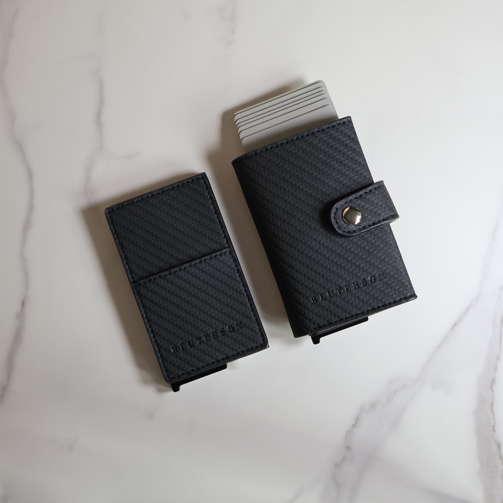 Beiden Varianten unterscheiden sich nicht in der Dicke und im Gewicht. Mit nur 1,2 cm Dicke und 44 Gramm ist es eines der dünnsten und edelsten Smart Wallets der Welt - Made in Germany.